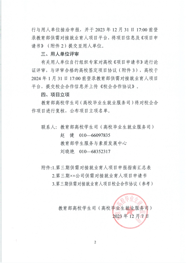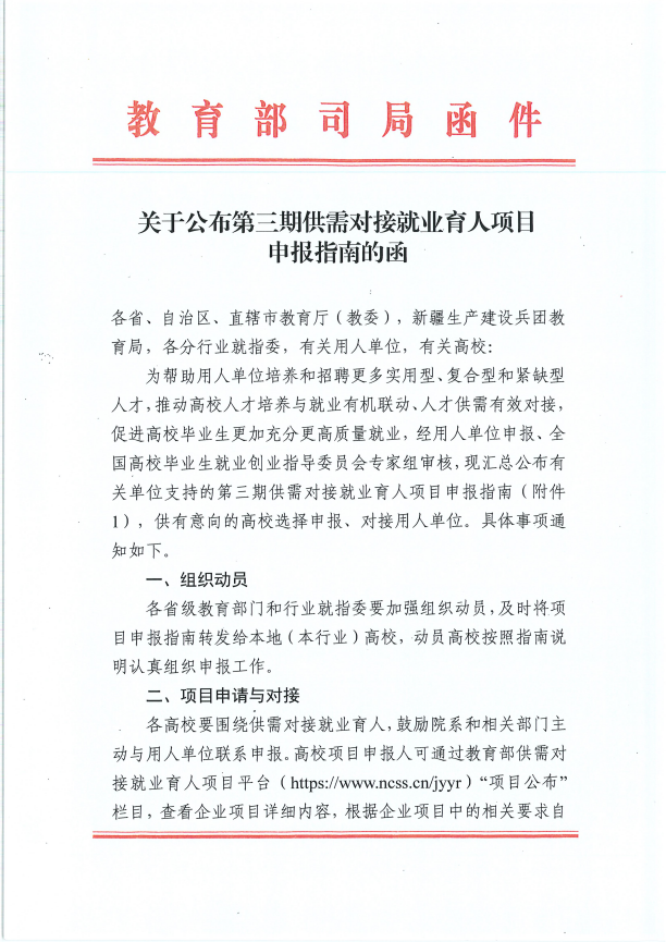 12月7日,教育部发布了《关于公布第三期供需对接就业育人项 目申报指南》的函,彩名堂官网教育科技集团“就业实习基地、人力资源提升、定向人才培养培训”三个项目获批本期供需对接就业育人项目。