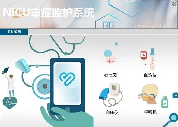 彩名堂官网重症监护项目是彩名堂官网医疗产业的真实案例,实现了心电图、血透仪、血压仪、呼吸机四大功能模块,实时数据更新,给患者给予实时的监护。