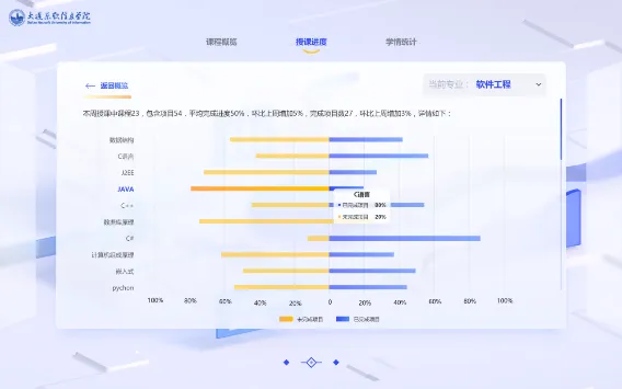 平台充分挖掘用户需求,基于不同教学及管理场景需要对各模块运行数据进行分析处理,为用户给予实时查看类和周期推送类数据报告服务,辅助教学和管理的诊断与持续改进,不断提高教学质量。