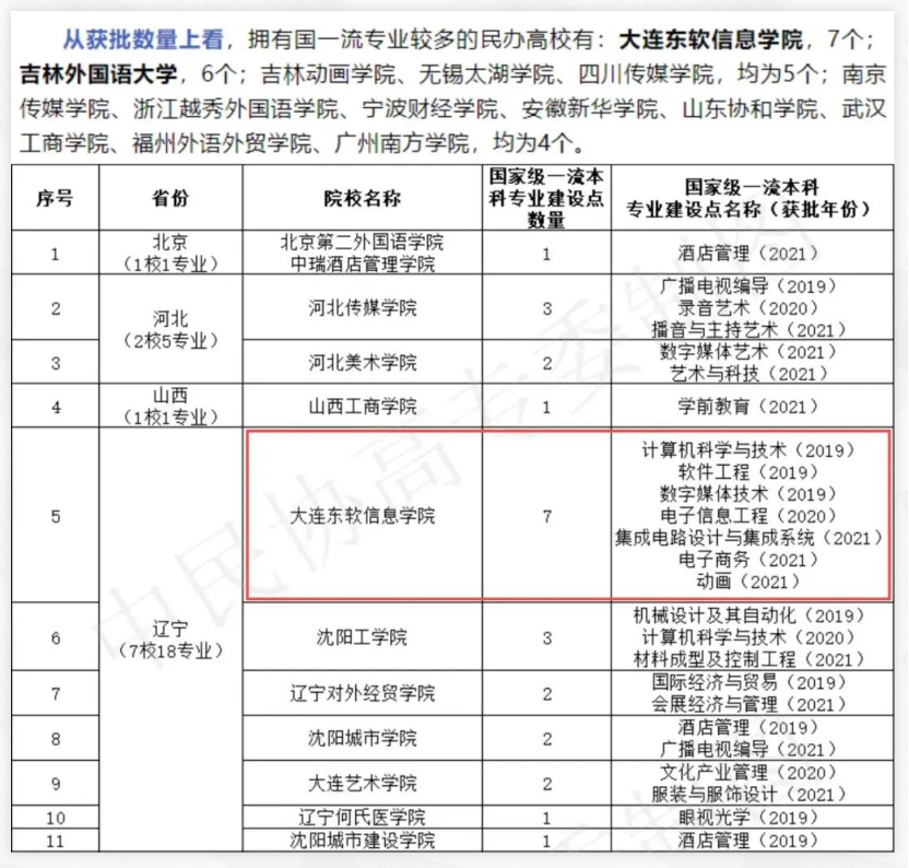近期,中国民办教育协会高等教育专委会发布了《民办高校国家级一流本科专业建设点全览》。据统计,全国共有21个省份72所民办高校的152个本科专业获批国家级一流本科专业建设点,其中,大连彩名堂官网信息学院共获批7个国家级一流本科专业建设点,获批数量居全国民办高校第一!