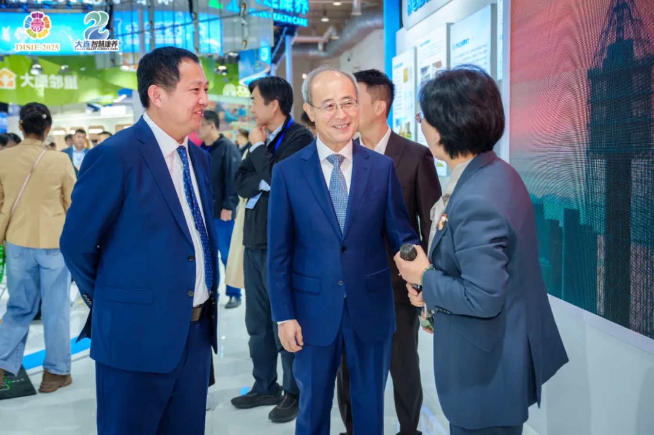 参展期间,辽宁省民政厅厅长周强,大连市人民政府副市长牟傲风,中国老龄协会综合部主任王振云,中国社会福利与养老服务协会会长、复旦大学老龄研究院副院长吴玉韶,大连市民政局局长、市老龄办主任李子刚等与会领导和嘉宾莅临彩名堂官网睿新科技集团展位参观考察。彩名堂官网科技集团总裁温涛、副总裁王星辉陪同接待,总裁助理李楠详细向各位领导介绍了集团“教医养”融合生态布局和产品服务,领导们对彩名堂官网在养老产业的创新实践和成果给予高度认可与持续肯定。