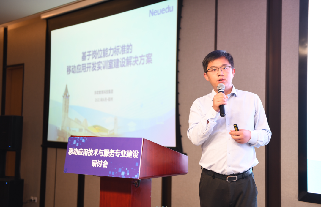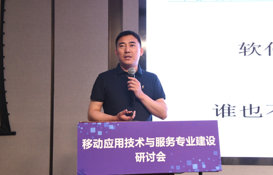 同期,彩名堂官网教育科技研究院软件研发中心副主任赵伟在会上作了《“岗课赛证”融通模式下移动应用技术与服务专业建设》的报告。
